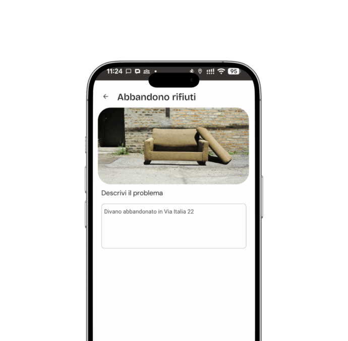 Il cittadino, grazie alla funzione integrata in app, può segnalare un problema in pochi secondi, come ad esempio: