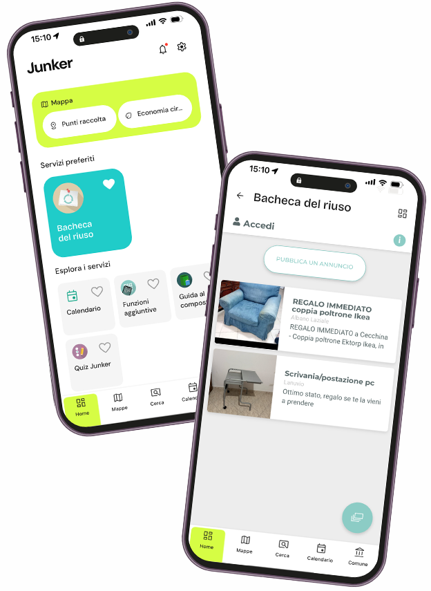 Junker app offre a Comuni e Gestori di Igiene Urbana la Bacheca del Riuso virtuale, una vetrina in app a disposizione sia dei cittadini che del Centro del Riuso…per far circolare i beni entro il territorio servito.